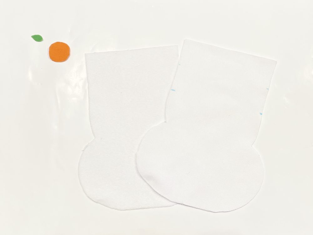 型紙を仕上がり線で切り離し、生地を裁断します。みかんの型紙(縫い代なし)も忘れずに写してください。