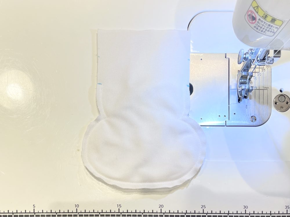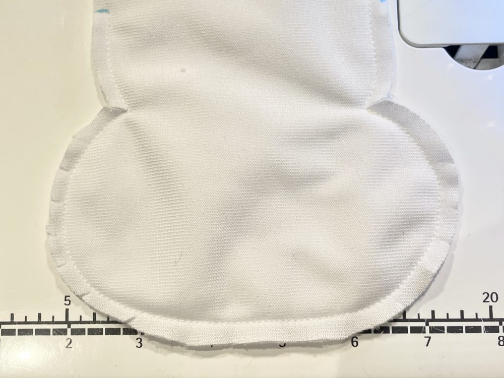 - 餅のクビレ部分の縫い代に切り込みを入れておきましょう。(表に返した時にきれいに仕上がります)