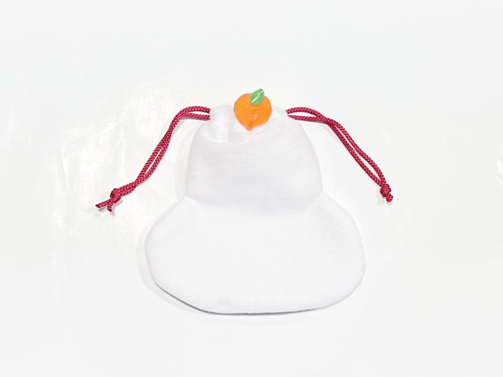 お餅部分の丸いフォルムと、ちょこんと乗ったみかんがポイント!中に小物を入れたり、お年玉を入れるポチ袋代わりにしたり、玄関先に飾るだけで一気にお正月ムードが高まります。