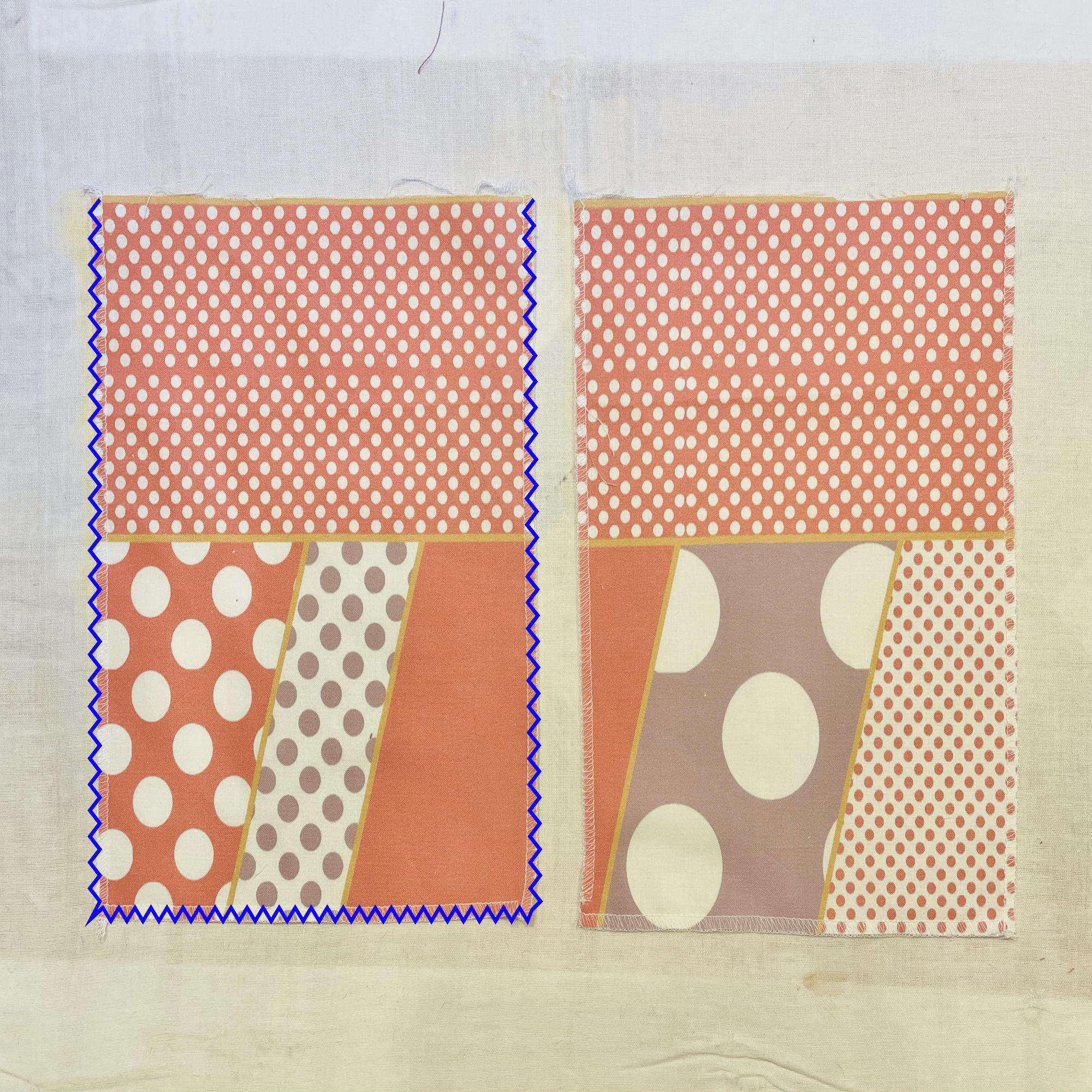 上部以外の周囲をほつれ止め処理します(青線部分)
