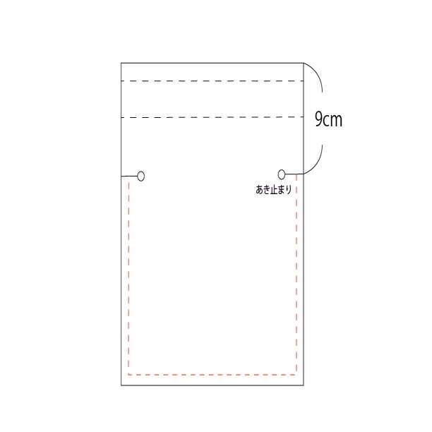 袋口部分を端から2mmのところをミシンで縫い、ひも通し口が出来上がります。