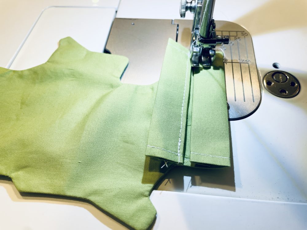 6.口布部分を三つ折りして縫う(ひも通し口)