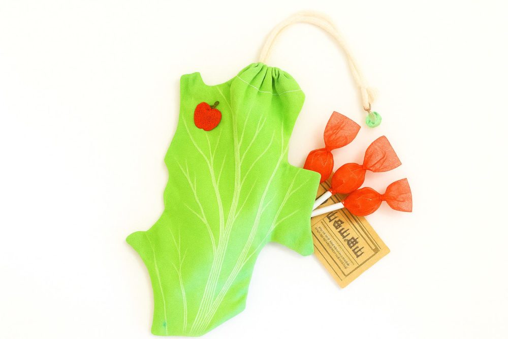 筆記具、ガジェット小物、ミニタオルなどがすっきり収まります。りんごは入りませんが、りんご味のキャンディーなら余裕。レタス畑を思わせるグリーンの布に、小さな甘い香りを閉じ込めてみるのもおすすめです。