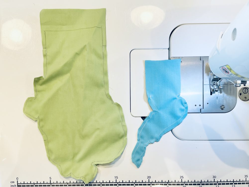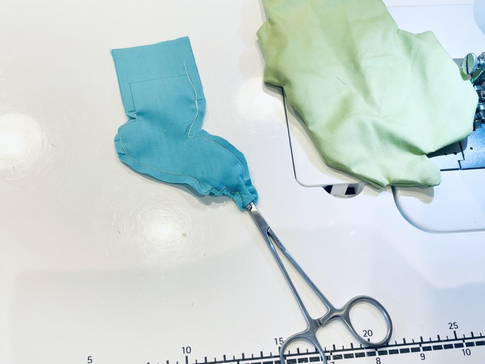 1)細く突き出た場所は縫い代を細めにして、返しやすくする