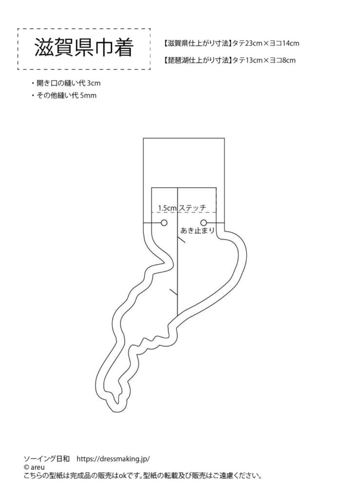 都道府県の形をそのまま巾着にしていくシリーズ!今回は「滋賀県」を巾着にする方法をご紹介します。