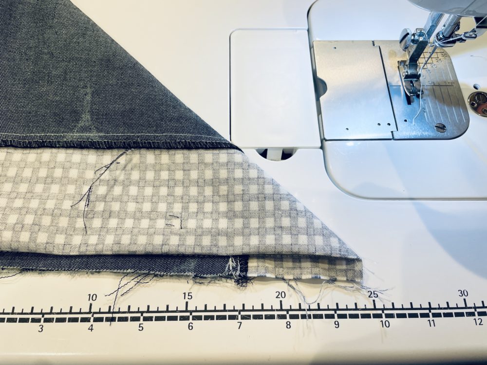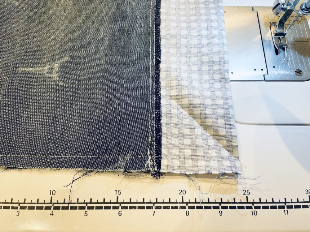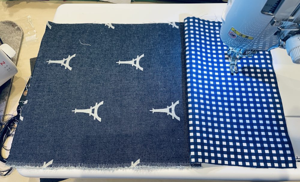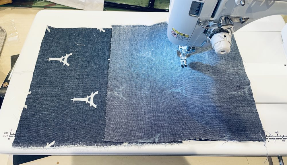 • 入れ口(短い辺)は後で三つ折りにするので、かけなくても大丈夫ですが、ほつれやすい生地ならかけておきましょう。