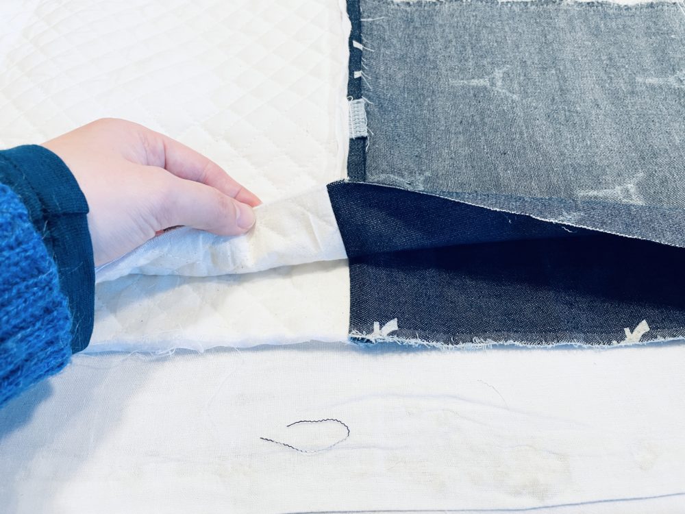 裏地無しで作る場合は、キルティング生地が丈夫でおすすめです。