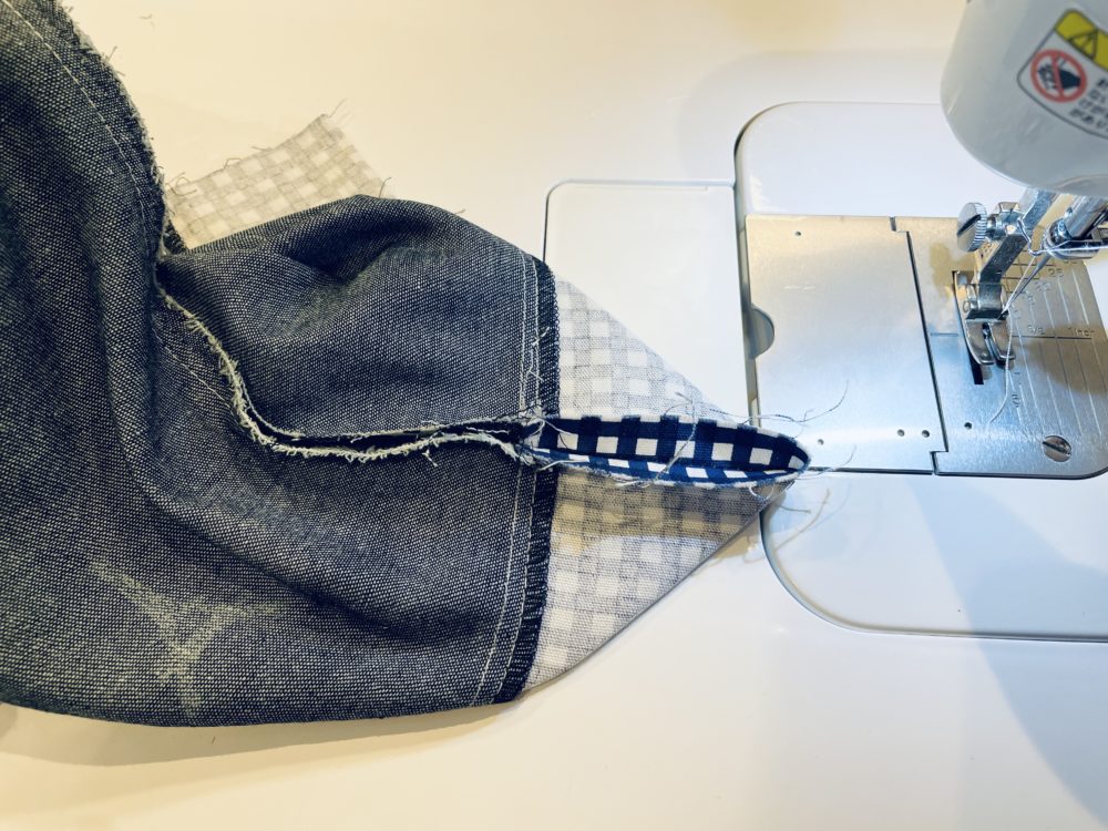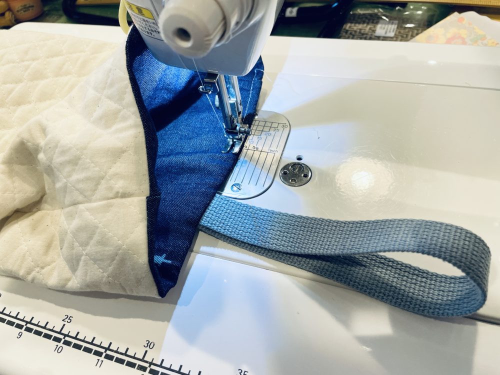 最後に、袋の口を5mmのステッチを一周して完成です!